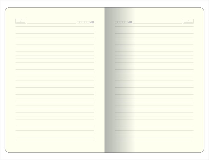 Недатированный ежедневник — блокнот A5 формата. Размер обложки 145*210 мм. Размер внутреннего блока 140×204мм. 288 страниц. Бумага 70 гр. Цвет айвори. Ляссе под цвет обложки.