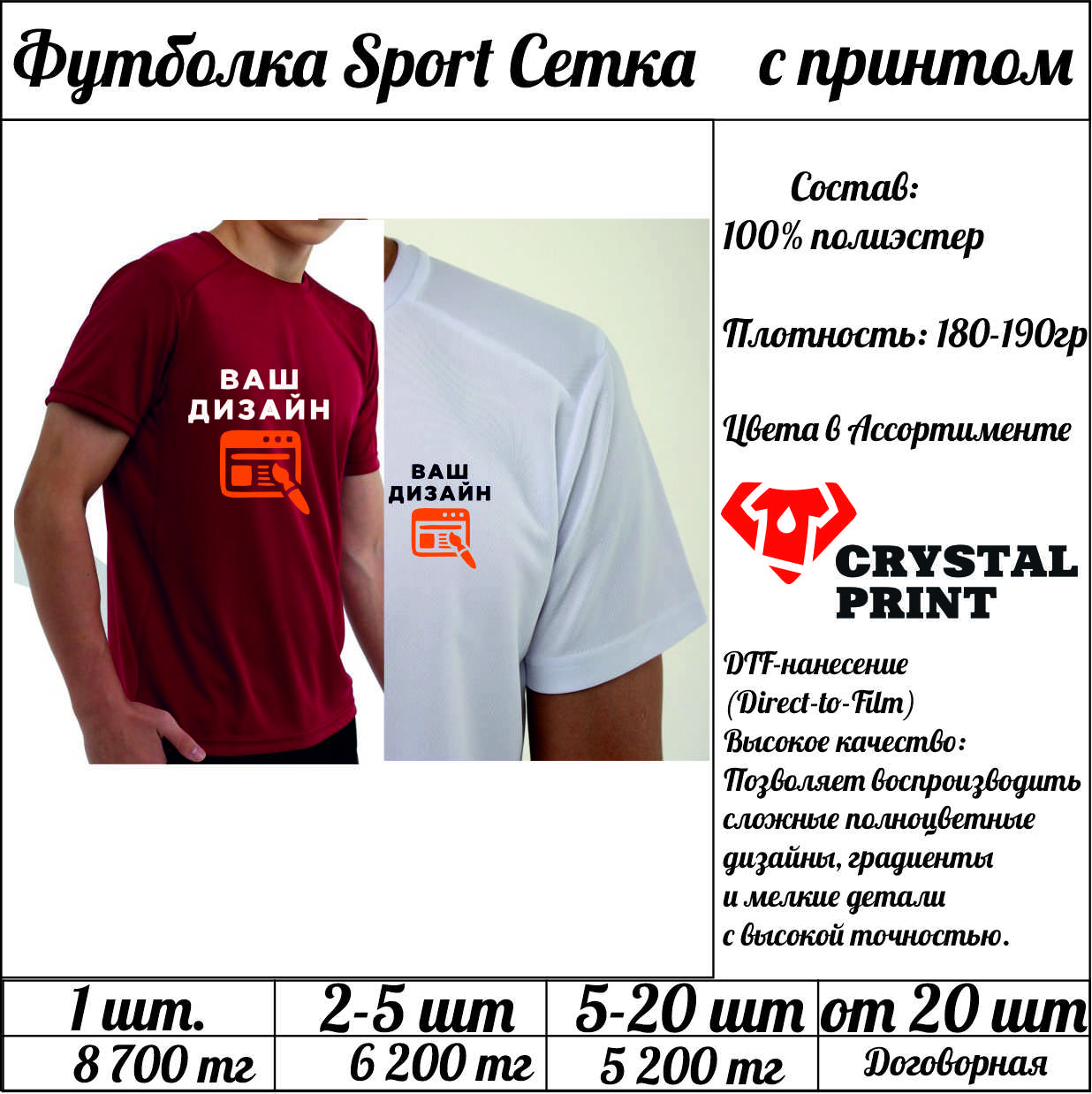 Футболка Sport Сетка с принтом - Crystal Print