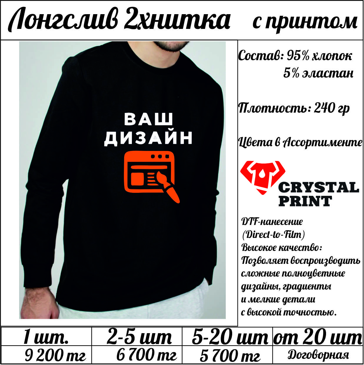 Лонгслив 2хнитка с принтом