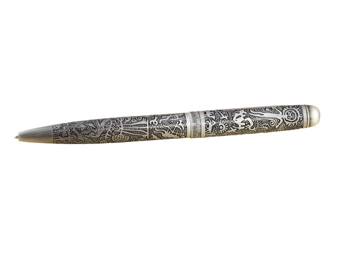 Подарочная шариковая ручка имеет элегантную классическую форму. Исключительный восточный стиль этой ручки подчеркивает корпус, декорированный петроглифами Тамгалы. Данные петроглифы являются одним из наиболее древних и ярких памятников наскального искусства Семиречья, и объектом Всемирного наследия ЮНЕСКО. Обладание такой ручкой поможет всегда оставаться в центре внимания. Шариковая ручка снабжена поворотным механизмом подачи стержня. На клипе имеется специальное место для нанесения логотипа или дарственной надписи, сделанной с помощью лазерной гравировки. Их с удовольствием преподносят ключевому клиенту или партнеру. Ручка упакована в презентабельную подарочную упаковку, в дизайн, которого также входят национальные орнаменты.