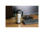 Термокружка «MAX», выполненная из пластика как внутри, так и снаружи. Область обхвата прорезинена для большего удобства пользования даже при высоких температурах содержимого. Объем составляет 400 мл. Диаметр дна термокружки составляет 8,2 см, высота — 17,7 cм.