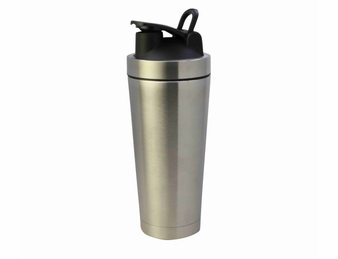 Cпортивный термос из нержавеющей стали для фитнеса, c двойными стенками. Может быть использован для любых напитков, а благодаря портативному шейкеру внутри, бутылка также подходит для перемешивания разного рода смесей. Не содержит токсичных материалов.